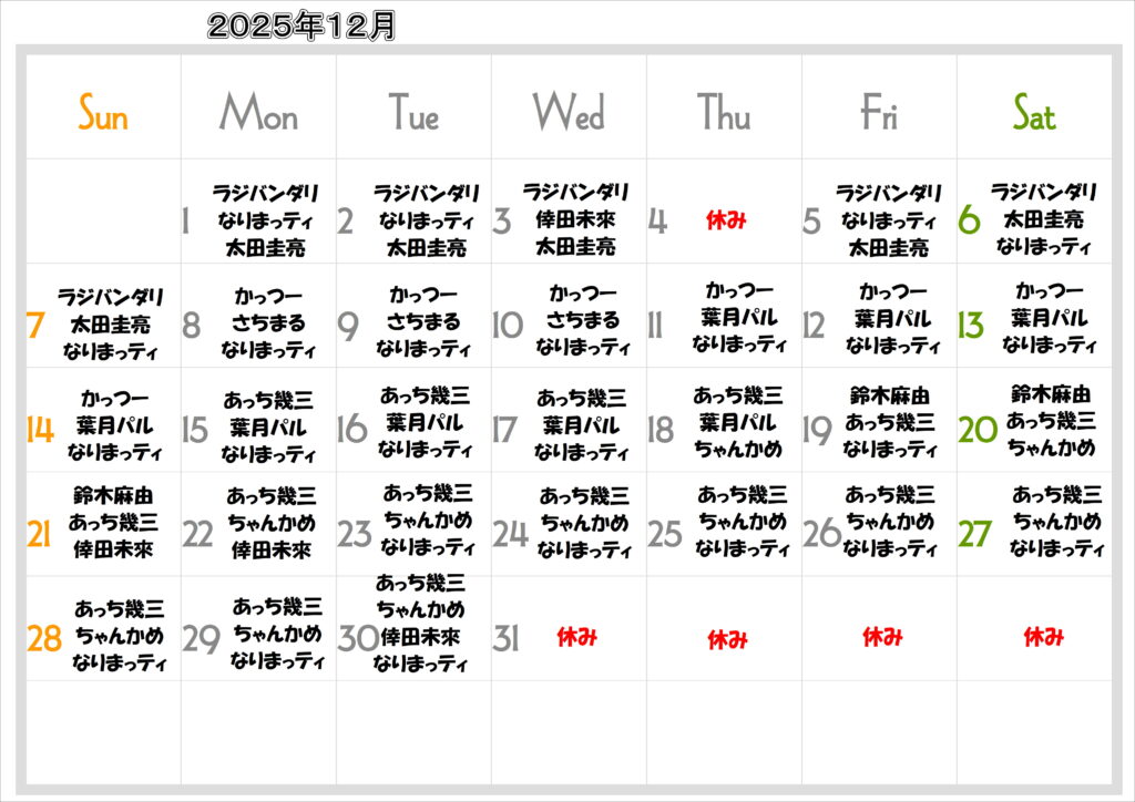 - 12月25日(木)松本えいじ・ジョニー志村・ノンスモーキー石井・アキリーヌ