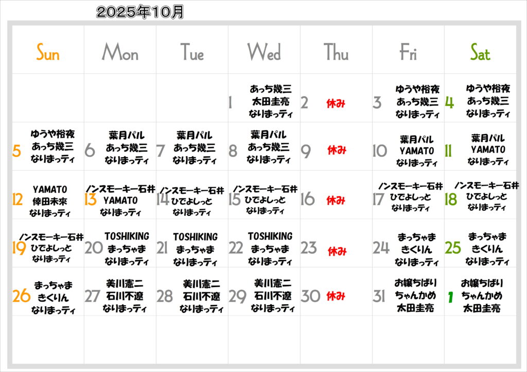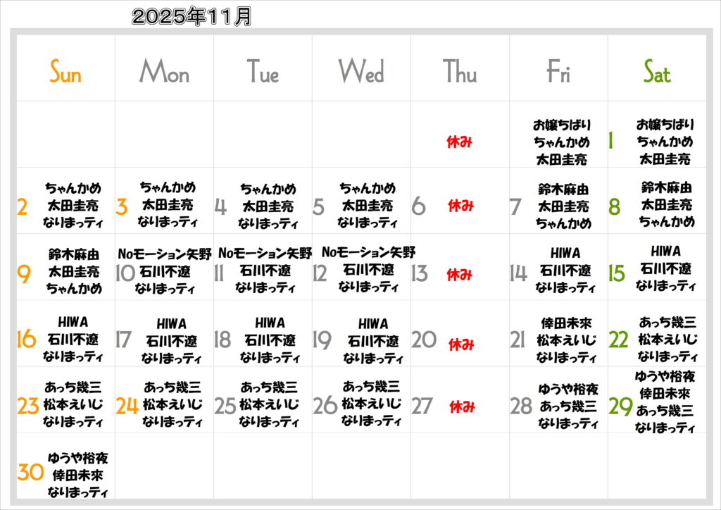 出演者予定表につきましてはFacebookまたはInstagramからもご確認いただけます。