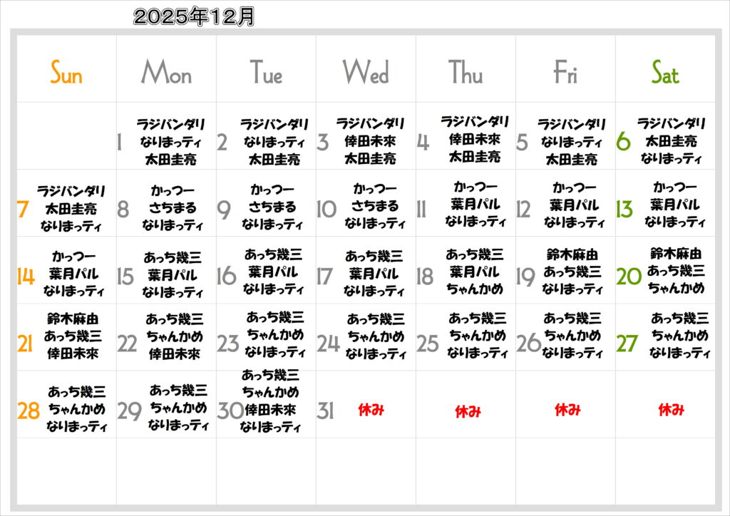 - 12月25日(木)松本えいじ・ジョニー志村・ノンスモーキー石井・アキリーヌ